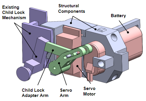 CAD model of lock mechanism retrofit