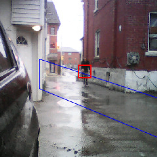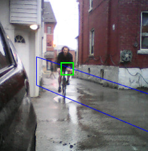 Camera detecting cyclist inside danger zone