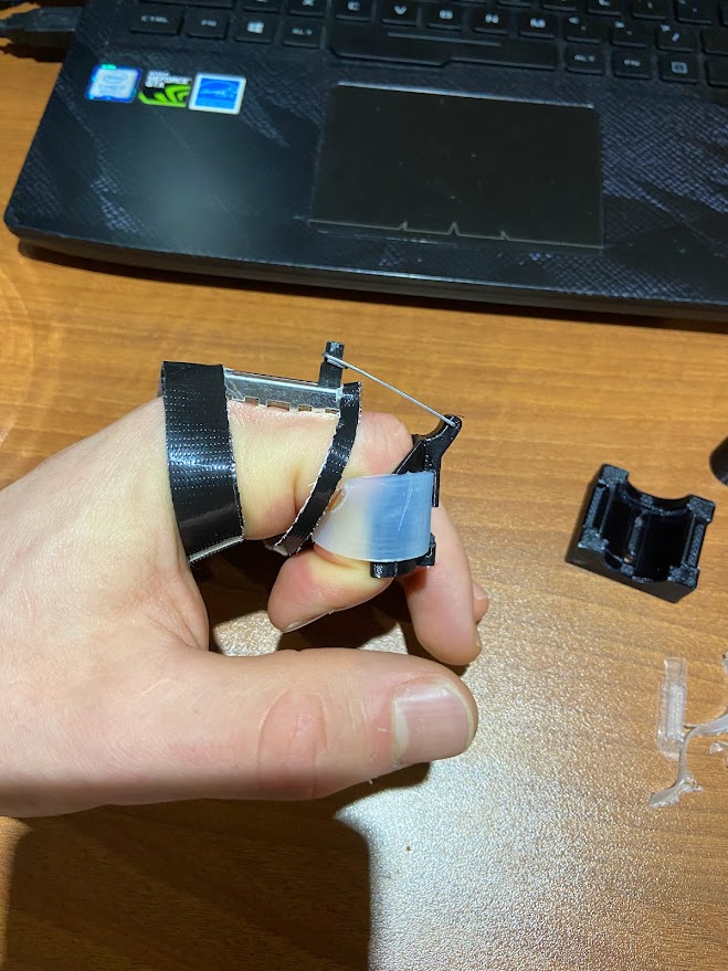 My work on this project so far has been mostly focused on optimizing the physical design of the glove. The glove consists of flexible and rigid 3D printed parts held together and to the hand with silicone molded straps. The movement of the first two joints of each finger is captured by linear potentiometers and the orientation of the hand is measured by a 9 axis inertial measurement unit (IMU). I went through a number of iterations for each of the components, and you can see some of the progressions below. I have also tested all of the electrical components independently and started to design the software for the glove. I will be working to share a more complete description of the full design process in the future.