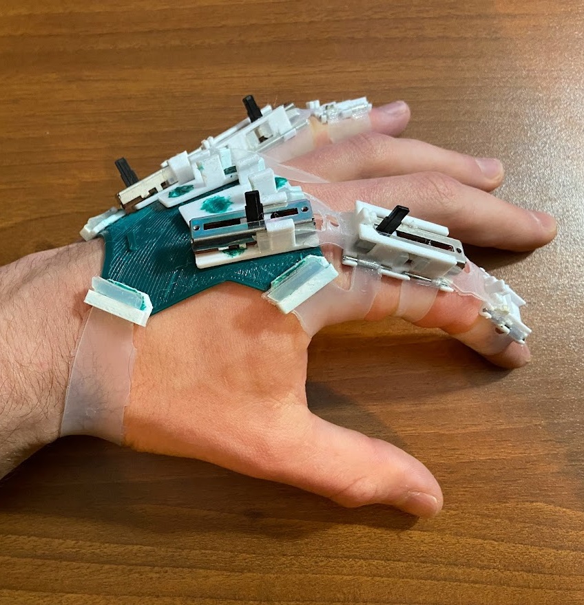 I have been working on this project since 2021 and it was initially conceived as an alternative input device for computer aided design and similar softwares. However, in principle it can be used in virtual reality or in any other computer interface capacity. When I initially started looking into this project I found many similar interface gloves but I noticed several gaps that I wanted to explore. Notable among these was that similar glove designs I saw do not allow the user to use their hands normally with the glove on. Furthermore, designs I have seen typically either have a “tendon” style sensor or flexible resistor sensors.
