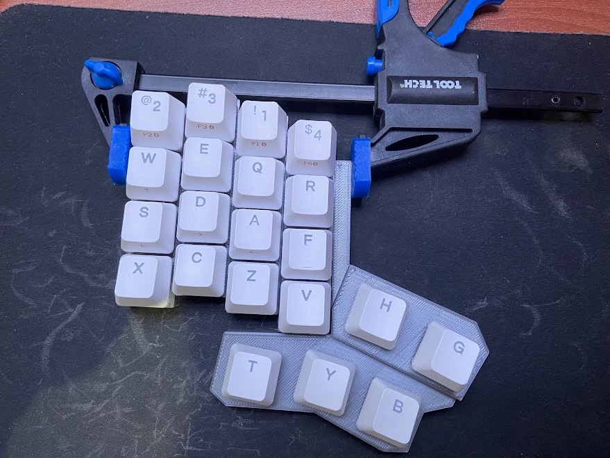 I will discuss some of the most notable features I implemented and will be adding a longer description of the design process and full feature set in the future. The keyboard I designed and 3D printed is a split, column staggered design with two 5 key thumb clusters and a total of 58 keys. It is also hot swappable and features a custom layout I programmed using the Quantum Mechanical Keyboard (QMK) software tools.